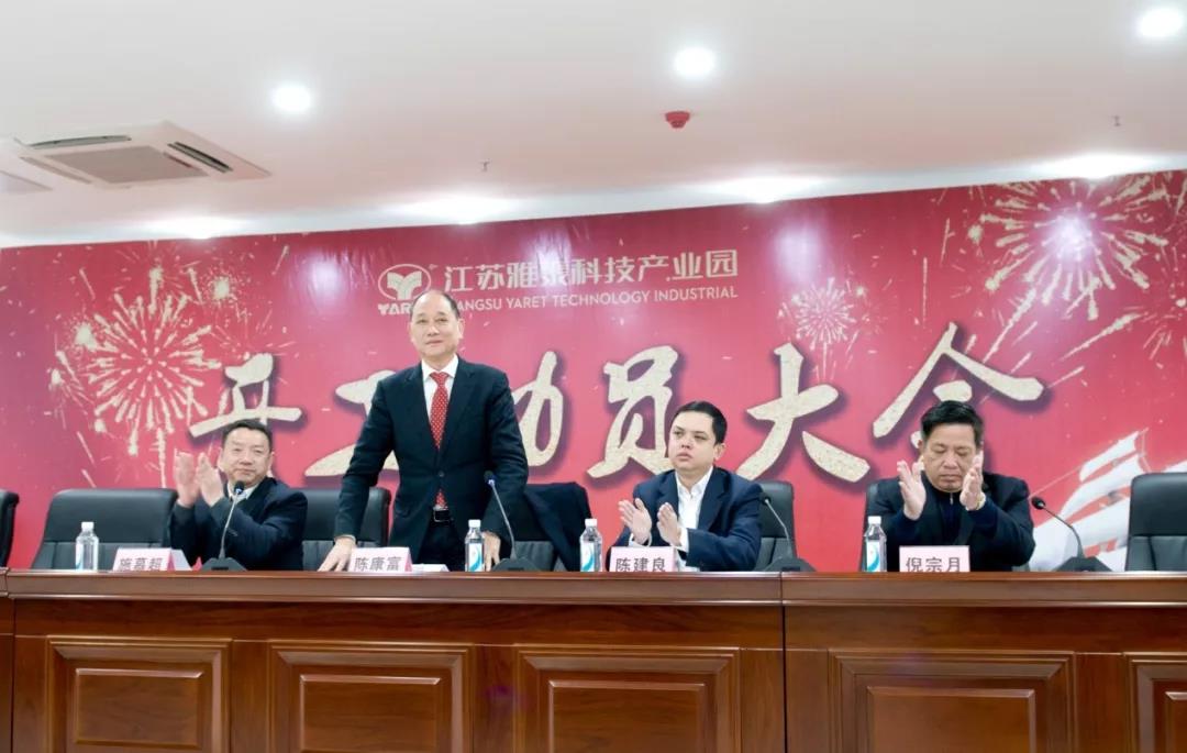 一元復(fù)始,萬象更新。2019年2月15日上午8時(shí)30分,集團(tuán)與江蘇雅泰科技產(chǎn)業(yè)園分別在上海與宿遷兩地順利召開了新春開工動(dòng)員大會(huì),董事長(zhǎng)陳康富攜集團(tuán)公司總裁班子成員向參會(huì)的各部門各車間員工拜年,向大家送去新春祝福和美好祝愿。