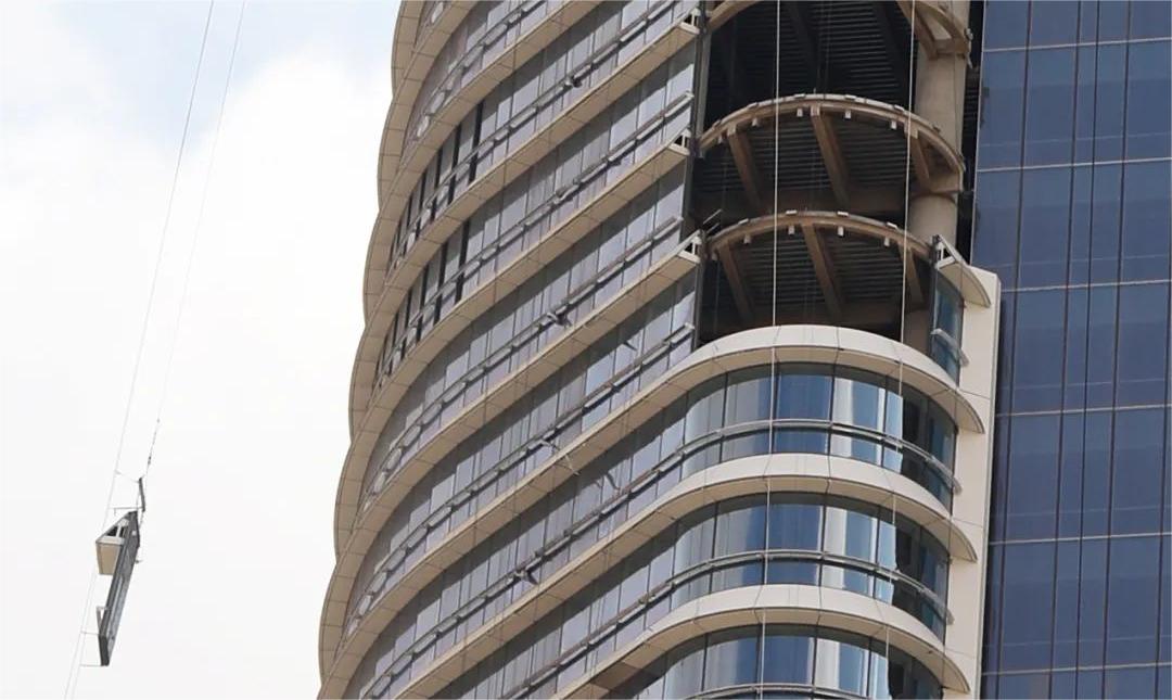 當(dāng)?shù)貧夂蜓谉岣稍铮罡邭鉁乜蛇_(dá)50攝氏度,大樓幕墻需具備很強(qiáng)的防曬作用和耐高溫性能。塔樓呈雙半圓筒狀體外觀構(gòu)造,配以橫向遮陽和雙曲拉鏈梁的裝飾鋁單板,猶如古埃及女神瓦吉特的外衣。這些設(shè)計元素不僅增強(qiáng)實用功能,如減少直射日光和控制室內(nèi)溫度,且增加了建筑的視覺吸引力,使其成為一座現(xiàn)代與傳統(tǒng)相結(jié)合的建筑。