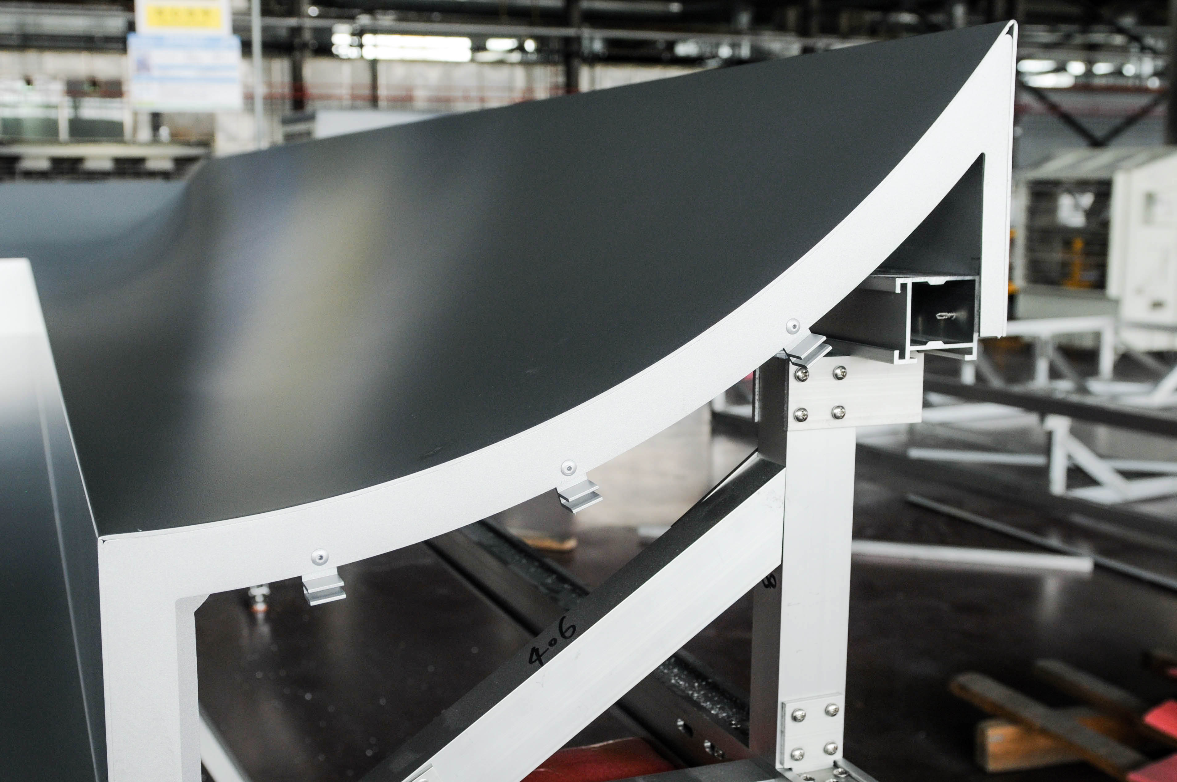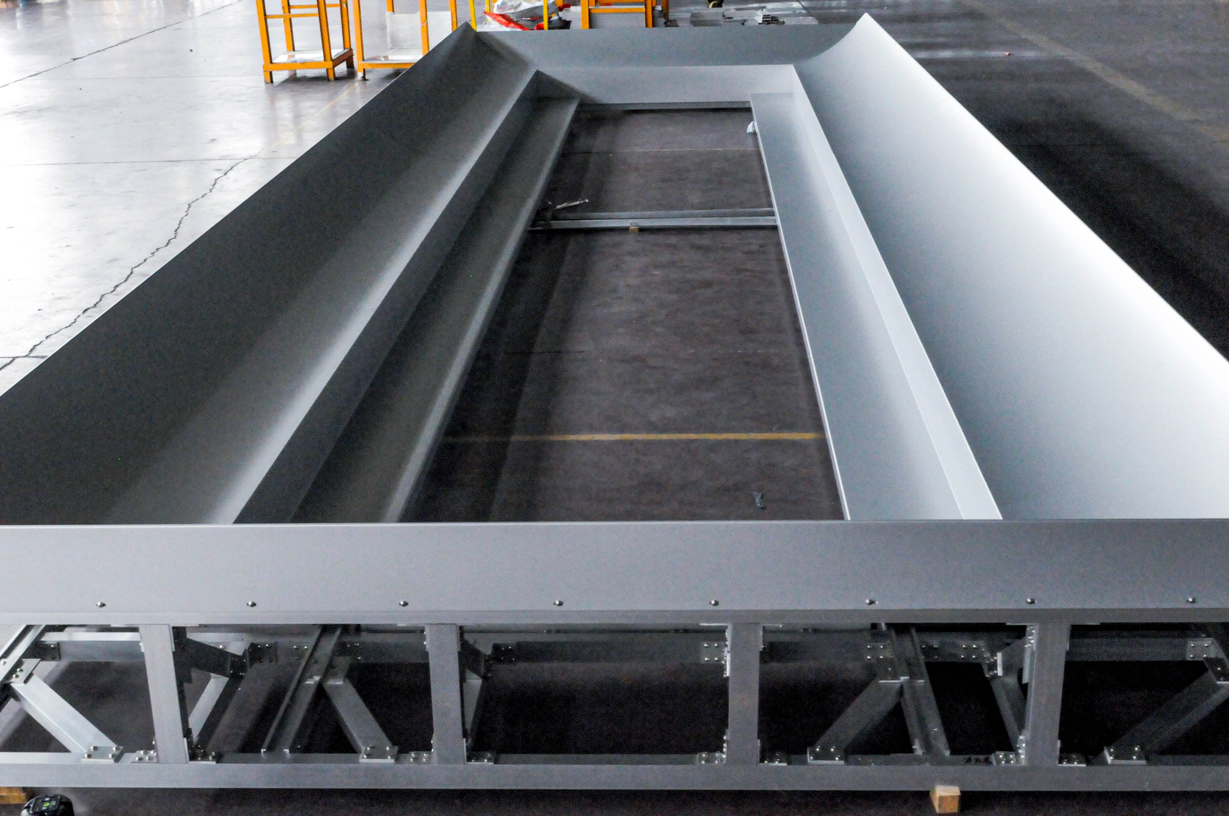 由于該項目幕墻板形狀特殊、工藝要求極高,給我們的加工和運輸都帶來了極大的考驗。為了保障產(chǎn)品質(zhì)量最后一關,公司使用專用運輸支架,該運輸支架既環(huán)保又能保證產(chǎn)品不受任何磨損到達項目工地,充分展示了公司產(chǎn)品定制化、個性化的特點。