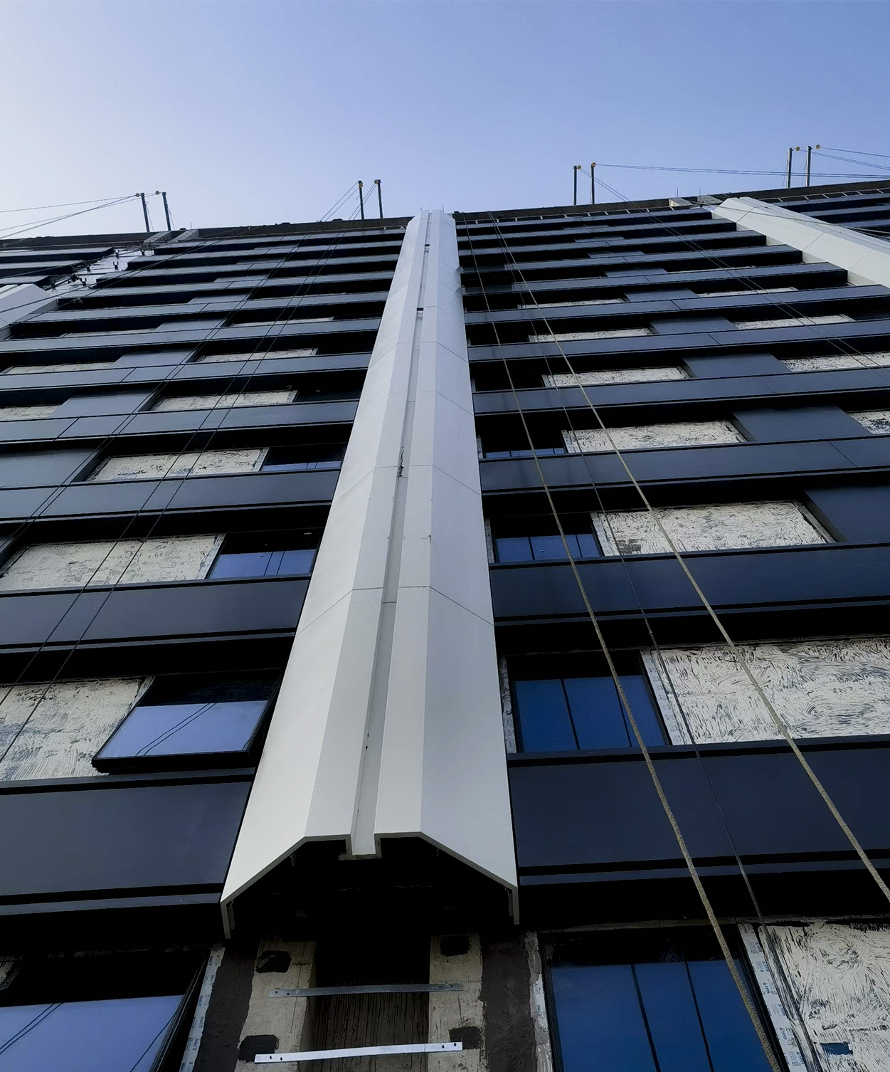 為保障幾萬名研發(fā)人員的生活配套,緊鄰華為研發(fā)中心的上海西岑單身公寓項(xiàng)目目前也基本完成。項(xiàng)目包含35棟單體建筑和1棟短租式公寓,公寓進(jìn)度非常迅速,外墻采用了高效集成的裝配式單元金屬幕墻系統(tǒng)。裝配式幕墻污染少、節(jié)能環(huán)保,可減少90%以上的建筑垃圾 。同時(shí)由于裝配式幕墻二次結(jié)構(gòu)已施工前置,所以相對傳統(tǒng)結(jié)構(gòu)安裝,工期會(huì)提前10%-15%。