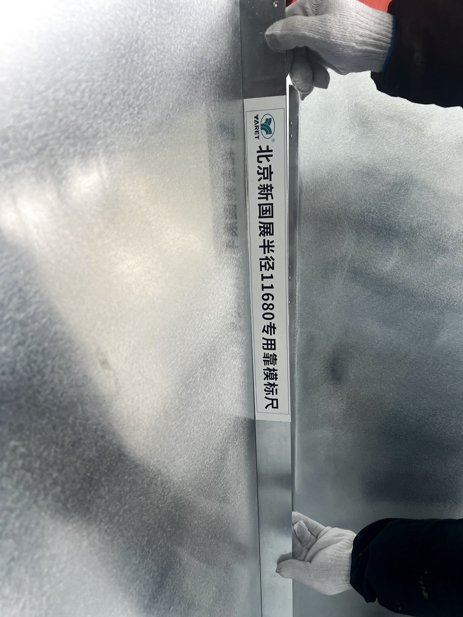 北京新國(guó)展“紫金絲帶”褶皺板,每件板上下、左右角度都有區(qū)別變化,左右呈發(fā)散式布局安裝,上下角度變化2.5度。尺寸偏差不超±1毫米,角度偏差不超過(guò)±0.5度,每件板都需專(zhuān)用模標(biāo)尺測(cè)量弧度。