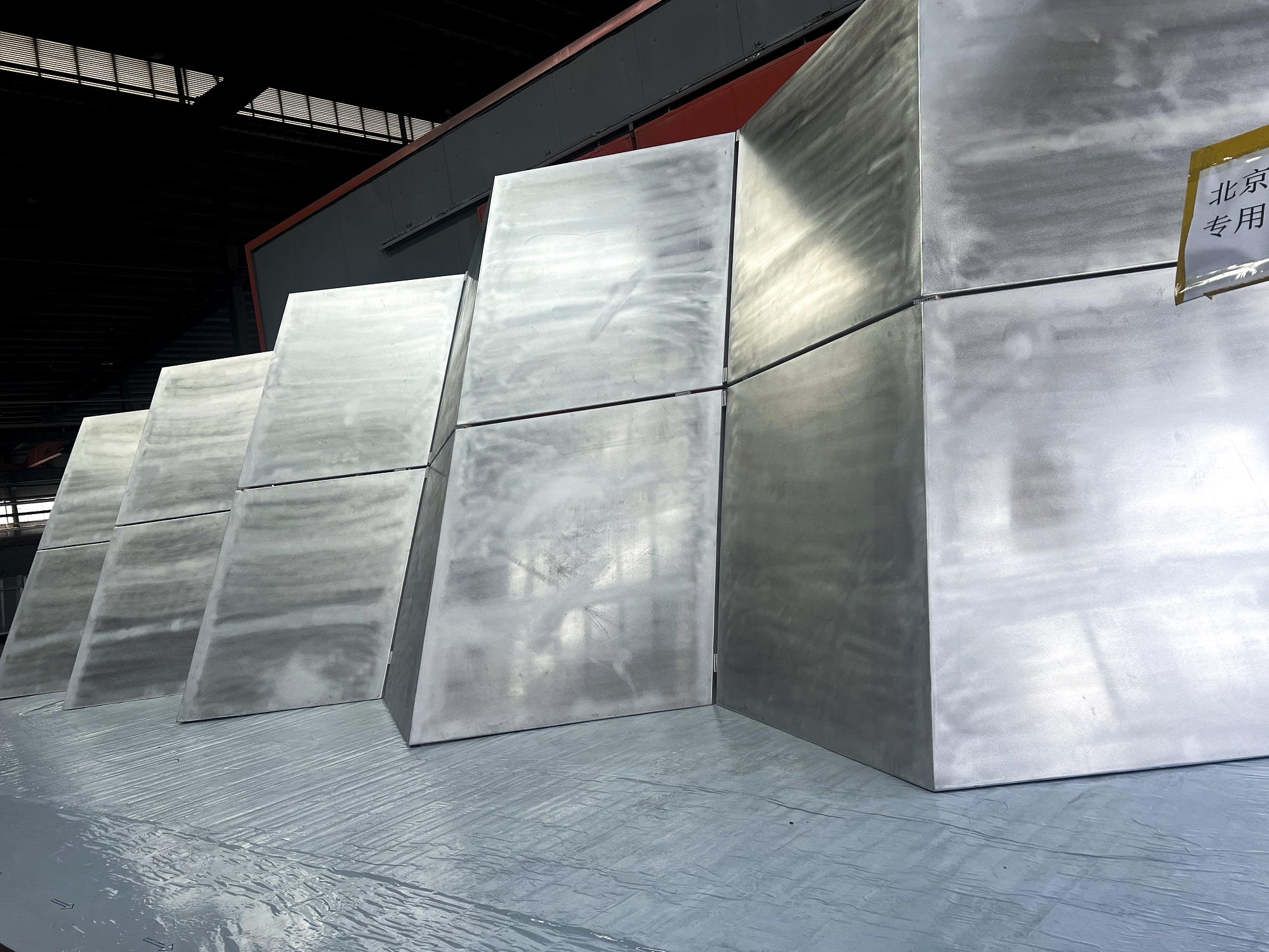 成品褶皺板經(jīng)檢驗(yàn)合格后,分別用保護(hù)膜,外附加一層氣泡膜進(jìn)行包裝防護(hù)。裝運(yùn)時(shí)釘制專(zhuān)用木箱進(jìn)行外圍運(yùn)輸防護(hù)。